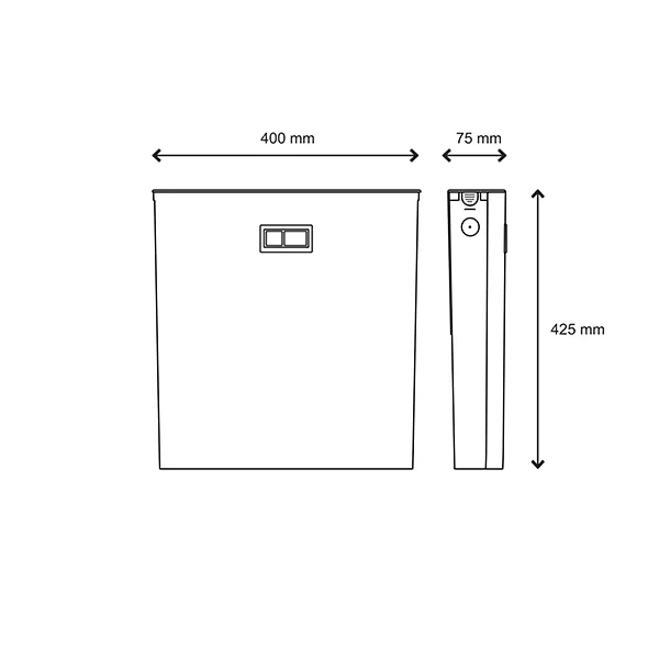 فلاش تانک روکار اولترا اسلیم ایران سفید ساده همانطور که از اسمش مشخص است، طراحی جمع و جور و بهینهای دارد که آن را به گزینهای بینظیر برای سرویسهای بهداشتی با فضای کوچک بدل کردهاست. ابعاد این مدل فلاش تانک ۳۸ سانتیمتر در ۴۲ سانتیمتر است. ضخامت فوق باریک ۶.۵ سانتیمتری این فلاش تانک، باعث شده است که فلاشتانک اولترا اسلیم ایران به باریکترین فلاش تانک روکار بازار تبدیل شدهاست.