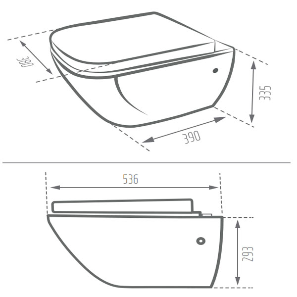 ابعاد این محصول 33*۳7.5*۵3.6 سانتیمتر است. این توالت فرنگی از سیستم فلاش یک زمانه استفاده میکند. در سیستم فلاش یک زمانه تخلیه فقط با یک حجم صورت میگیرد. به طوری که برای تمام مواقع از حجم آب یکسانی برای تخلیه توالت فرنگی استفاده میشود.