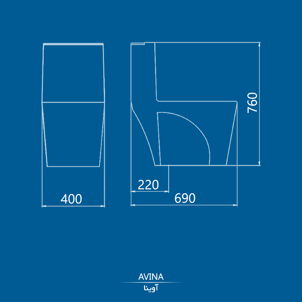 توالت فرنگی آویناطراحی صاف و مسطح تخلیۀ سریع و کم‌صدا با استفاده از سیستم فلاشینگ توربوجت مکانیزم دوزمانه برای کاهش مصرف آبدارای تانک بلند و مکانیزم 28 سانتی‌متری باکیفیت درب آرام‌بند و آسان‌نصب با کیفیت عالی