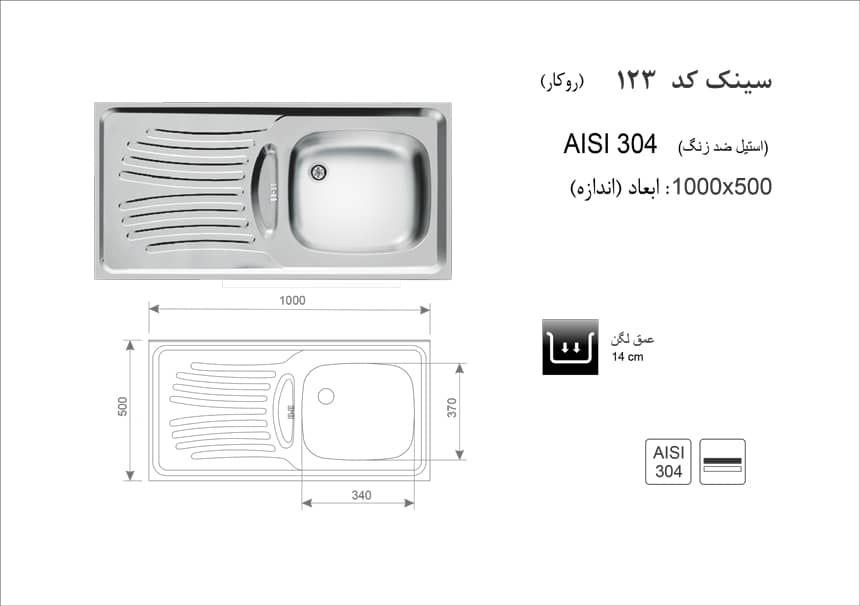 سینک اخوان مدل 123 از انواع سینک روکار محسوب میشود. نمای سینک استیل شده است. ابعاد سینک 50*100 سانتیمتر است که شکل فانتزی بودن لگن زیبایی منحصر به فردی برای این سینک رقم زده است. این سینک از انواع نیمه عمیق به شمار میرود. سینک روکار اخوان مدل 123 دارای یک لگن و یک سینی است که برای قرار دادن وسایل مناسب خواهد بود.