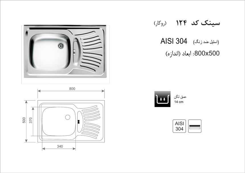 سینک اخوان مدل 124 از انواع سینک روکار محسوب میشود. نمای سینک استیل شده است. ابعاد سینک 50*80 سانتیمتر است که شکل فانتزی بودن لگن زیبایی منحصر به فردی برای این سینک رقم زده است. این سینک از انواع نیمه عمیق به شمار میرود. سینک روکار اخوان مدل 124 دارای یک لگن و یک سینی است. از لوازم جانبی این سینک میتوان به سیفون و زیرآب اشاره کرد. سیفون ظرفشویی در بسیاری از سینکها جزو لوازم جانبی به حساب میآید. این وسیله در زیر سینک ظرفشویی نصب شده و کاربرد آن خارج کردن آب به سمت فاضلاب میباشد.