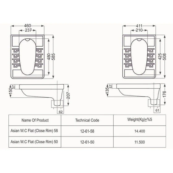 ابعاد توالت ایرانی (cm):20.7*46*58.5