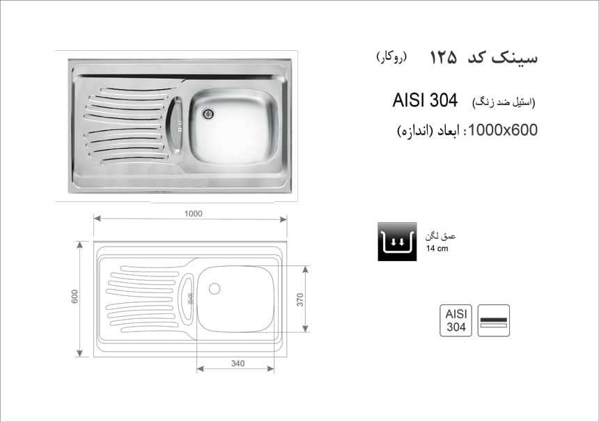 سینک اخوان مدل 125 از انواع سینک روکار محسوب میشود. نمای سینک استیل شده است. ابعاد سینک 60*100 سانتیمتر است که شکل فانتزی بودن لگن زیبایی منحصر به فردی برای این سینک رقم زده است. این سینک از انواع نیمه عمیق به شمار میرود. سینک روکار اخوان مدل 125 دارای یک لگن و یک سینی است که برای قرار دادن وسایل مناسب خواهد بود.