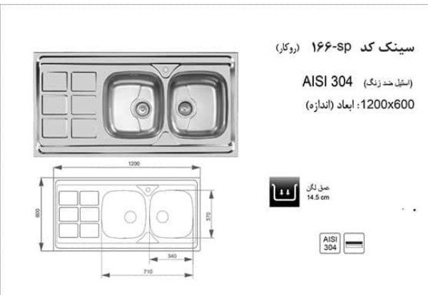 سینک اخوان مدل 166SP از انواع سینک روکار محسوب میشود. نمای سینک استیل شده است. ابعاد سینک 60*120 سانتیمتر است که شکل فانتزی بودن لگن زیبایی منحصر به فردی برای این سینک رقم زده است. این سینک از انواع نیمه عمیق به شمار میرود. سینک روکار اخوان مدل 166SP دارای دو لگن و یک سینی است که برای قرار دادن وسایل مناسب خواهد بود. همچنین این سینک دارای یک میوه شور است.