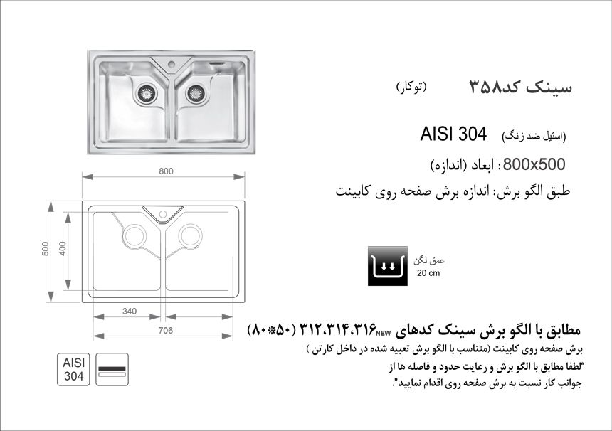 مشخصات سینک توکار اخوان مدل 358