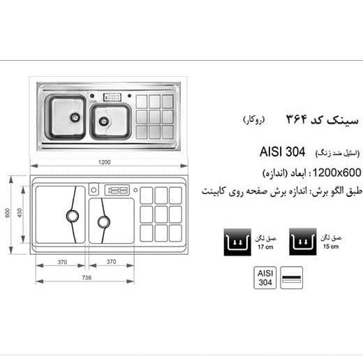 سینک اخوان مدل 364 از انواع سینک روکار محسوب میشود و در دسته سینکهای باکسی قرار میگیرد. نمای سینک استیل شده است. ابعاد سینک 60*120 سانتیمتر است. این سینک از انواع عمیق به شمار میرود. سینک روکار اخوان مدل 364 دارای دو لگن و یک سینی است که برای قرار دادن وسایل مناسب خواهد بود.
