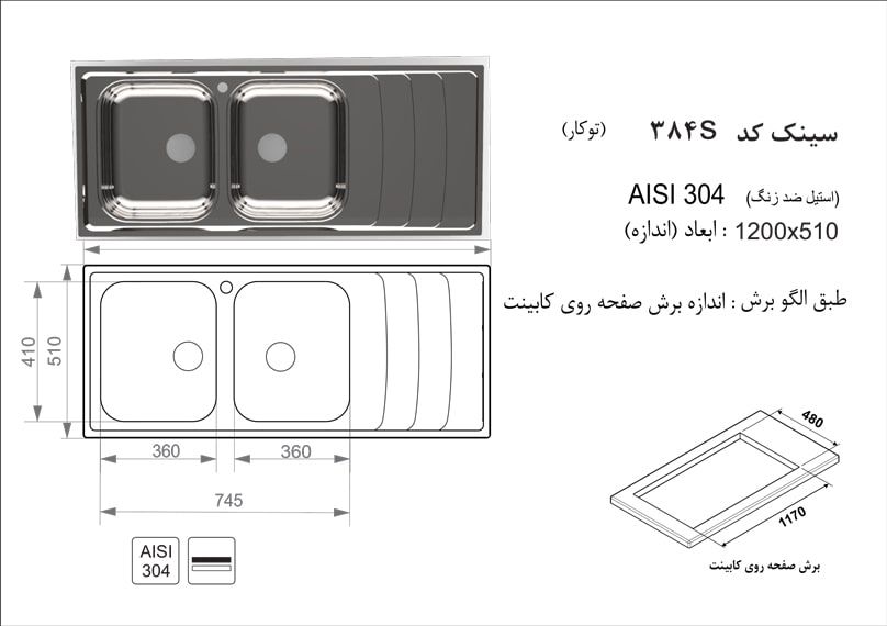مشخصات سینک توکار اخوان مدل 384S