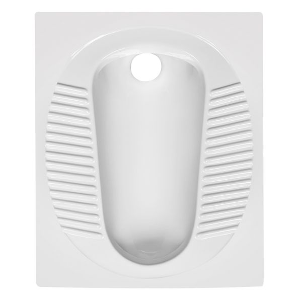 این نوع توالت زمینی (ایرانی) قدیمی ترین مدل سرویسهای بهداشتی ایرانی است و فشار زیادی را به کمر و زانو وارد میکند. در این مدل نشیمن توالت هم راستا با سطح رویی سنگ توالت است.