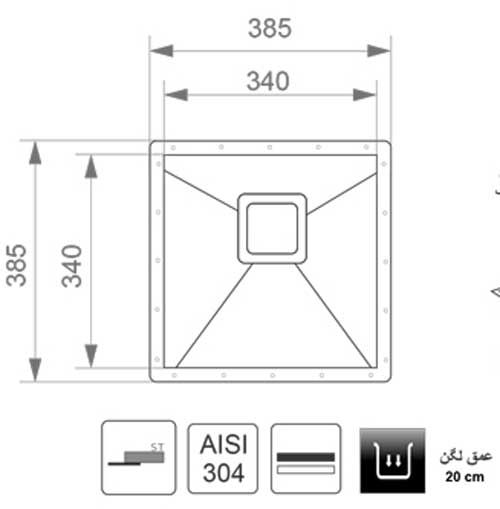 مشخصات سینک زیرکورین اخوان مدل 408