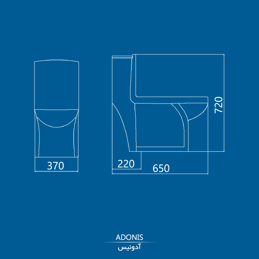 توالت فرنگی آدونیس دارای مکانیزم دوزمانه برای صرفه‌جویی در مصرف آب درب آرام‌بند و آسان‌نصب تخلیۀ سریع با سیستم فلاشینگ توربوجت و خروجی مکانیزم 2 اینچی