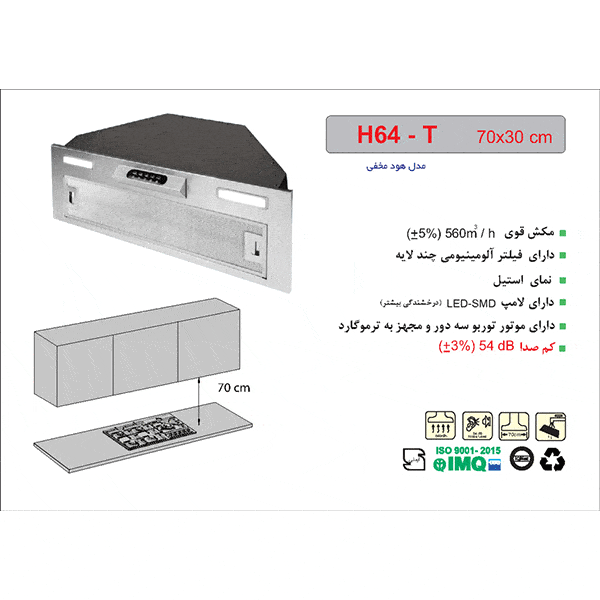 هود مخفی اخوان مدل 202 از انواع هود مخفی به شمار میرود. نمای ظاهری هود استیل کار شده است. اندازه آن 30*70 سانتیمتر است. این هود دارای فیلتر آلومینیومی چند لایه و لامپ SMD است. قدرت مکش هود قوی و میزان صدای آن 54 دسیبل است. هود مخفی اخوان مدل H202 دارای صفحه کلید معمولی است. از دیگر ویژگیهای این هود میتوان به موتور توربو اشاره کرد.