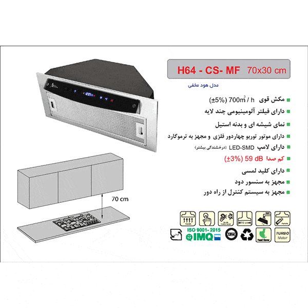 هود مخفی اخوان مدل H212 از انواع هود مخفی به شمار میرود. نمای ظاهری هود شیشه مشکی و استیل کار شده است. اندازه آن 30*70 سانتیمتر است. این هود دارای ریموت کنترل، فیلتر آلومینیومی چند لایه و لامپ LED/SMD است. قدرت مکش هود 700 مترمکعب و میزان صدای آن 56 دسیبل است. هود اخوان مدل H212 دارای صفحه نمایش LCD و صفحه کلید لمسی است. از دیگر ویژگیهای این هود میتوان به موتور توربو 4 دور و سنسور اشاره کرد.